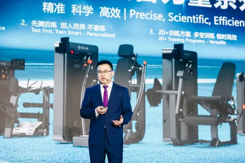 在产品策略及新品发布环节,舒华体育副总裁侍勇回顾并发布了一系列引领行业趋势的智能化产品,包括V10智能商用楼梯机、多人训练站、体能系列产品、Biofit数字力量器械、AI健身助手3.0版,以及AI智能健身房解决方案等。这些产品与方案致力于为用户构建从测评到训练的全流程个性化运动方案,真正让简单运动融入每个人的生活。除了新品,侍勇也详细解读了舒华“科技、实用、可靠”的产品定位。