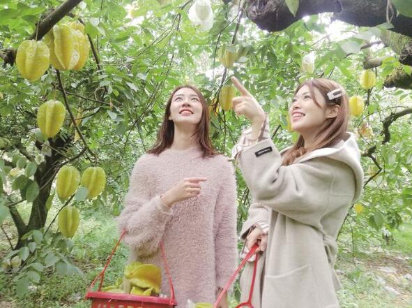 下河杨桃成熟,吸引了众多游客前往采摘。李金文摄