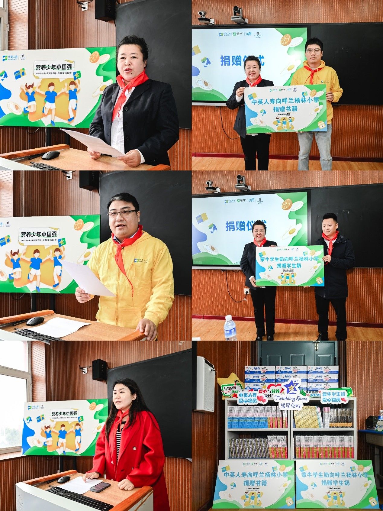 启动仪式上,呼兰杨林乡中心小学副校长、蒙牛学生奶黑龙江省推广中心领导及中英人寿志愿者代表分别致辞,并向小学捐赠图书500余册以及全校学生10日份学生奶。