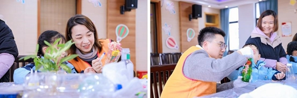志愿者们与孩子们一起,将废弃的空瓶变废为宝、装饰一新并种上绿植,用以装点校园,不仅美化了环境,更在孩子们心中播撒下了绿色的种子和希望。活动过程中,孩子们与志愿者们欢声笑语,互动频繁,彼此间建立了深厚的情谊。